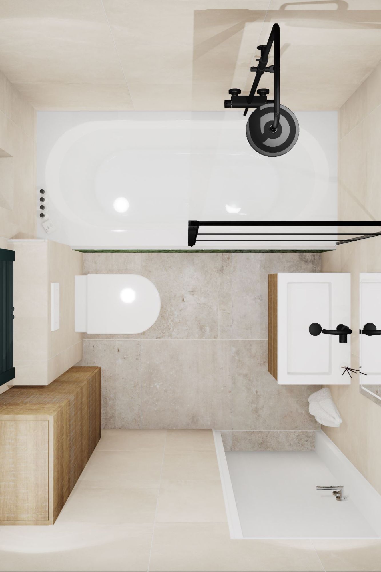 Deze badkamer biedt een perfecte balans tussen stijl en functionaliteit. Het compacte ontwerp maakt slim gebruik van de beschikbare ruimte, terwijl hoogwaardige materialen en een eigentijds kleurenpalet zorgen voor een luxe uitstraling. Ideaal voor kleinere woningen zonder in te leveren op comfort.